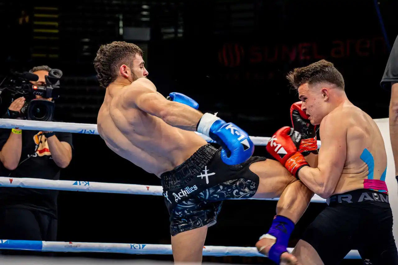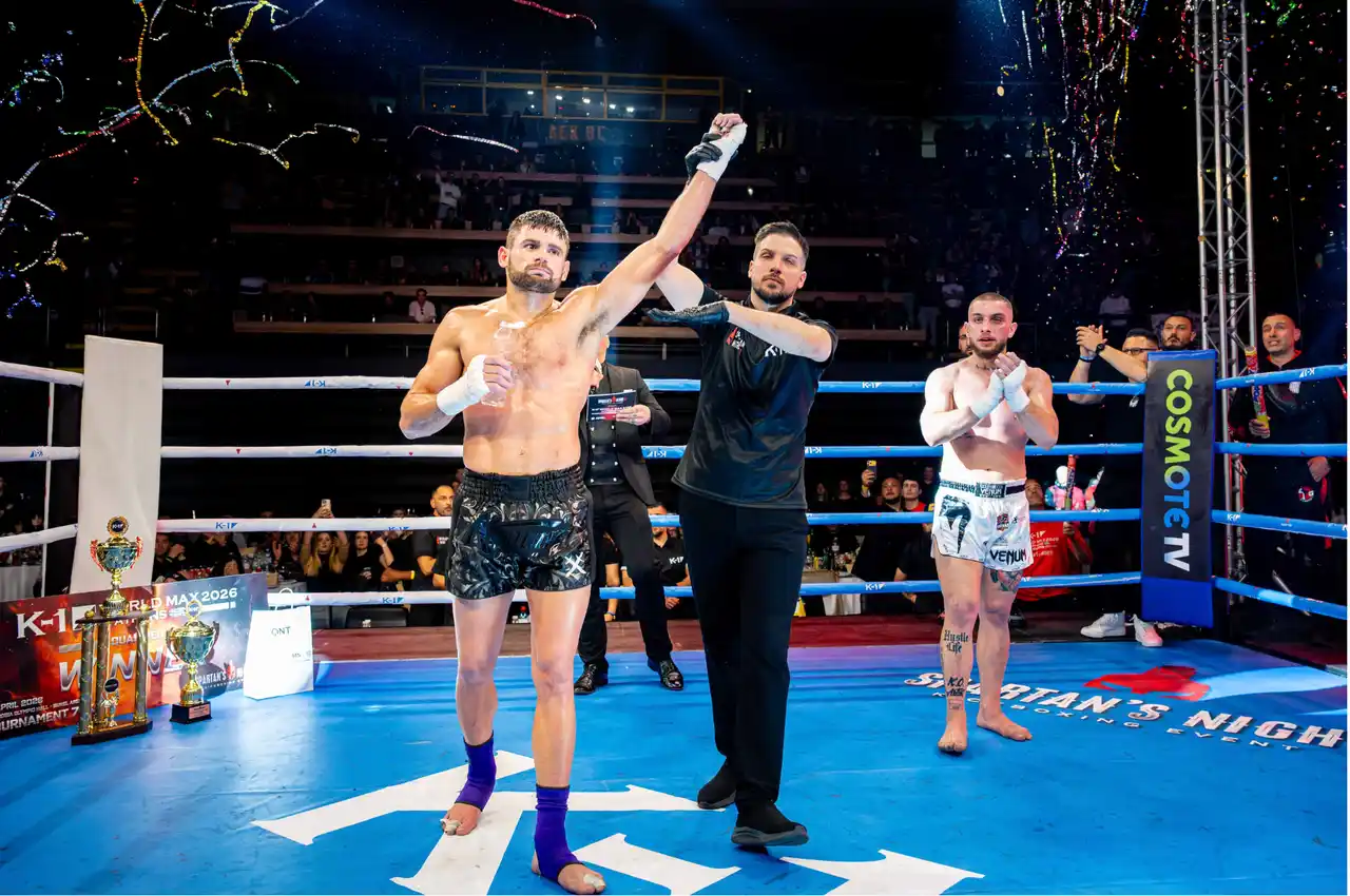 [K-1 WORLD MAX 2026 -70kgギリシャ予選トーナメント・準決勝(1)/3分3R・延長1R] 〇アキレアス・カラピペリス(ギリシャ) KO 1R1分19秒 ※右ハイキック ●クリストス・ミハルツォス(ギリシャ) 準決勝第一試合は、カラピぺリスとミハルツォスが激突。カラピぺリスは、WAKO-PRO世界ライトミドル級(-71.8kg)暫定王者。鉄仮面をかぶって入場し、構えを左右にチェンジしながらコンパクトで鋭い左フックと伸びる右ストレートが武器。 対するミハルツォスは20歳のTHE CORE FIGHT GAMESライト級(-71kg)王者で、飛びヒザ蹴り、飛び込んでのロングフックを得意としている。 1R、カラピぺリスはプレスをかけつつ前蹴りとカーフキックで攻撃。ミハルツォスは押し返してのワンツーとパンチで勝負をかける。カラピぺリスもワンツーで打ち合いに。そして飛びヒザ蹴りを仕掛けた。打ち合いになり、カラピぺリスは左フックを顔面へ。ミハルツォスはワンツーも、ヒザ蹴りを合わせられる。カラピぺリスのヒザ蹴りがローブローとなり、会場からブーイング。中断後に再開。 カラピぺリスは飛びヒザ蹴り、左右のパンチからハイキックと怒涛の攻撃。すると右ハイキックが入り、ミハルツォスは前のめりにダウン。そのままカラピぺリスのKO勝ちが決まった。 |