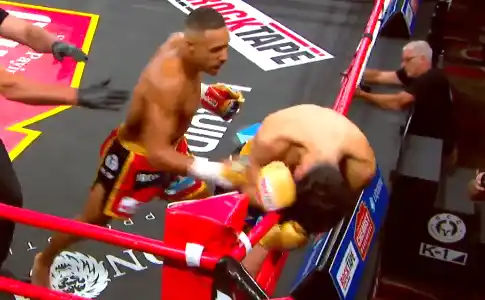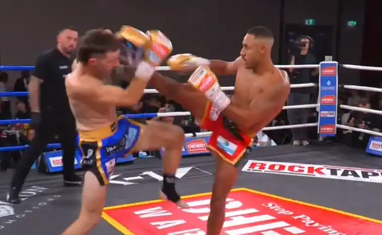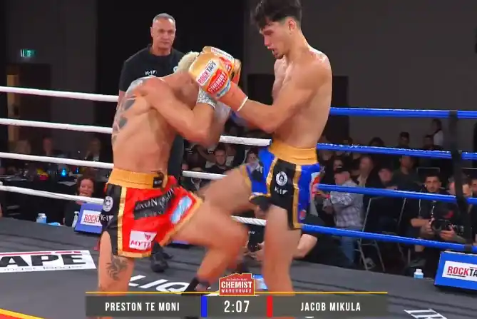 [K-1 WORLD MAX 2026 -70kgオーストラリア予選トーナメント・準決勝(1)/3分3R・延長1R] 〇ザック・パンクハースト(オーストラリア/Taylormade Muay Thai) TKO 2R0分01秒 ※ロックが左腕負傷 ●コナー・ロック(ニュージーランド/South Island Lee Gar) パンクハーストは、WBCムエタイ クイーンズランド州・スーパーウェルター級(-69.85kg)王者の23歳で、戦績は15戦14勝(8KO)1敗。ウガンダ系の黒人選手で、蹴りとパンチのバランスがいい印象だ。K-1参戦経験のあるルシールと同じTaylormade Muay Thaiに所属する。 ニュージーランド人のロックは、ISKAニュージーランド南島ミドル級(-75kg)王者で18戦12勝(10KO)4敗2分とこちらもKO率が高い。この選手もテクニシャンタイプで、パンチからのヒザ蹴りをボディへ突き刺す印象だ。 なお、パンクハーストは契約体重-70.0kgを1.2kgのオーバーのため、1、2ラウンドをそれぞれ1ポイントの減点でスタート。ファイトマネーが減額される。 1R、勢いはロックだが、パンチの的確さはパンクハーストが上か。パンクハーストはパンチから右ハイキックを決めて会場を盛り上げた。2R、開始とともにゴングが鳴り、パンクハーストのTKO勝ちが宣告。ロックは左腕を痛めたようだ。これで、パンクハーストの決勝進出が決まった。 |