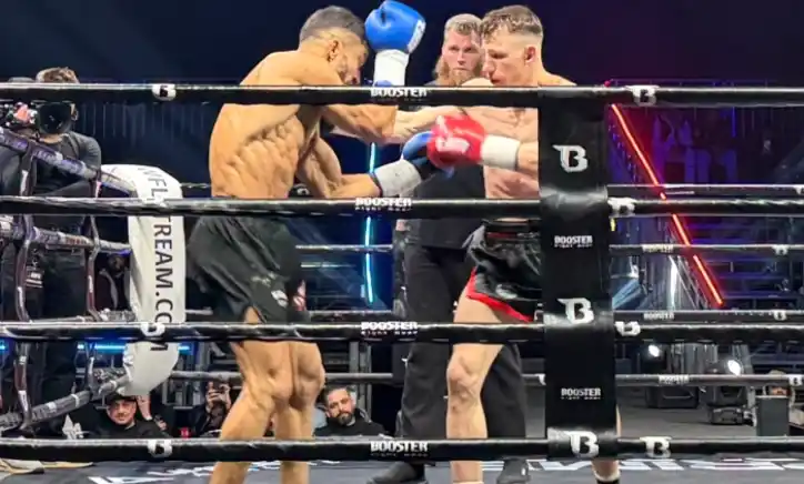 [K-1 WORLD MAX 2026 -70kgオランダ予選トーナメント・準々決勝(4)/3分3R・延長1R] 〇ジェイジェイ・モーリス(オランダ/Gym One/Team Morris) TKO 1R3分 ※カットによるドクターストップ ●ジョーイ・クライエンブルフ(オランダ/Ser’s Gym) モーリスは、オランダ期待の新鋭のWFLオランダ-67kg王者。12戦6勝(1KO)5敗1分の戦績を残し、今回のトーナメントで優勝を狙う。対するオランダのクライエンブルフは8戦4勝(2KO)4敗の26歳で、名を広めたいところ。 1R、プレスをかけて追いかけるモーリスは、踏み込んでの強烈なローキック。クライエンブルフはワンツーで反撃も押されてしまう。左ハイキック、右のクロスを見せるモーリスは、最初から勝負をかけている印象だ。 サークリングで動くクライエンブルフ。モーリスは左フックを打ち込むと、クライエンブルフは右目上から出血。ドクターチェック後に再開。クライエンブルフはパンチでラッシュ。そのままラウンド終了も出血が多いためドクターストップがかかり、モーリスの勝利が決まった。 |