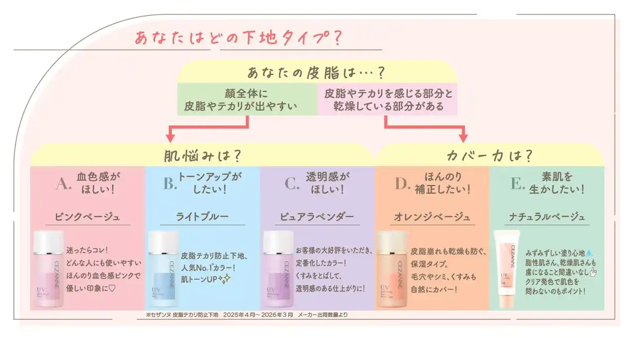 あなたはどの下地タイプ?肌悩みに合わせて選べる「セザンヌ 皮脂テカリ防止下地」 |