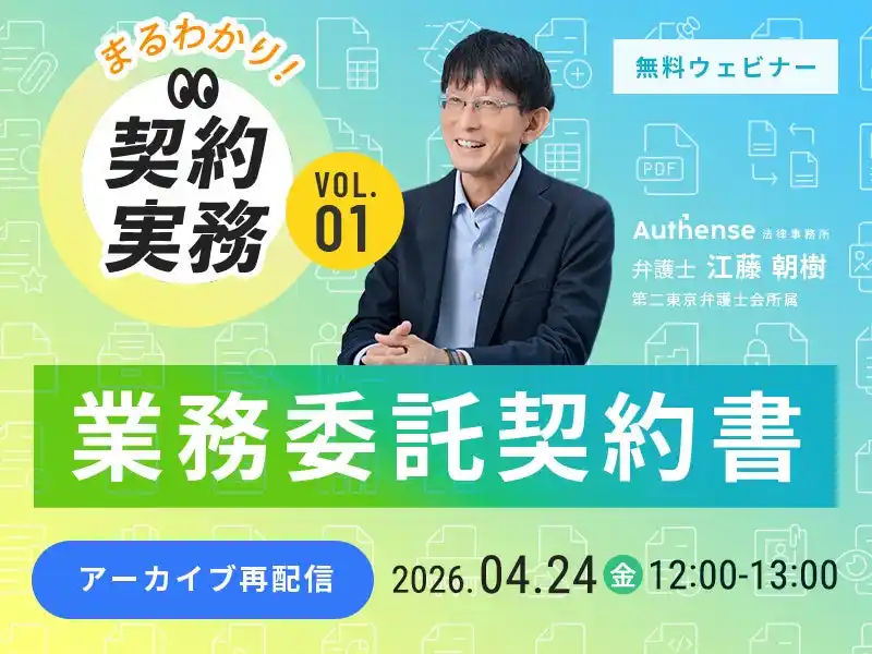 このたび、ご好評につき、昨年の8月に開催したウェビナーシリーズ「まるわかり!契約実務」第1回のアーカイブ配信を実施することをお知らせします。 |