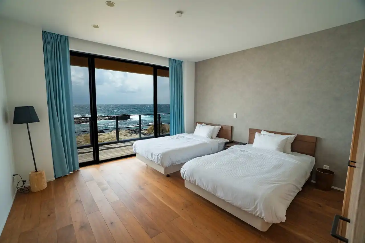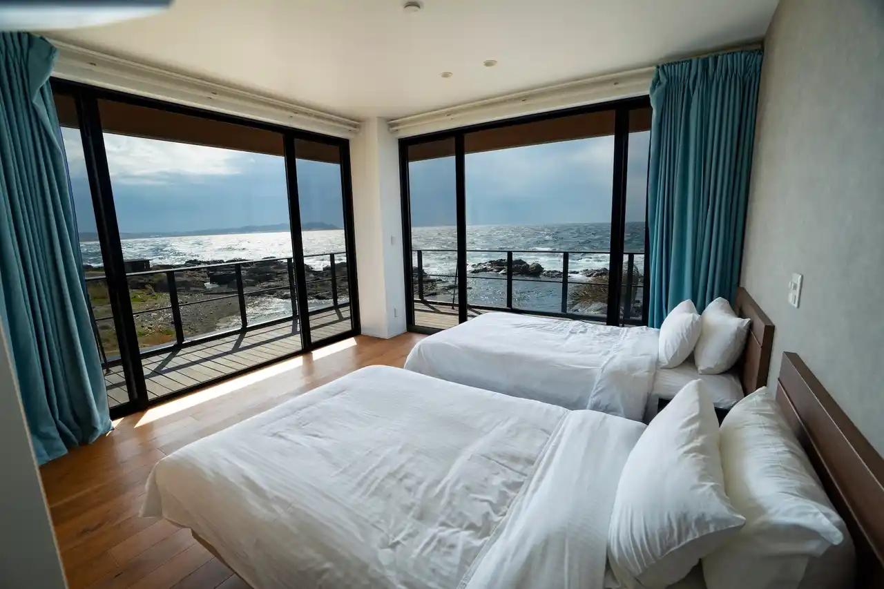 窓を閉めていても聞こえる心地よい波の音が、日頃の疲れを癒し深い眠りへと導きます。 |
