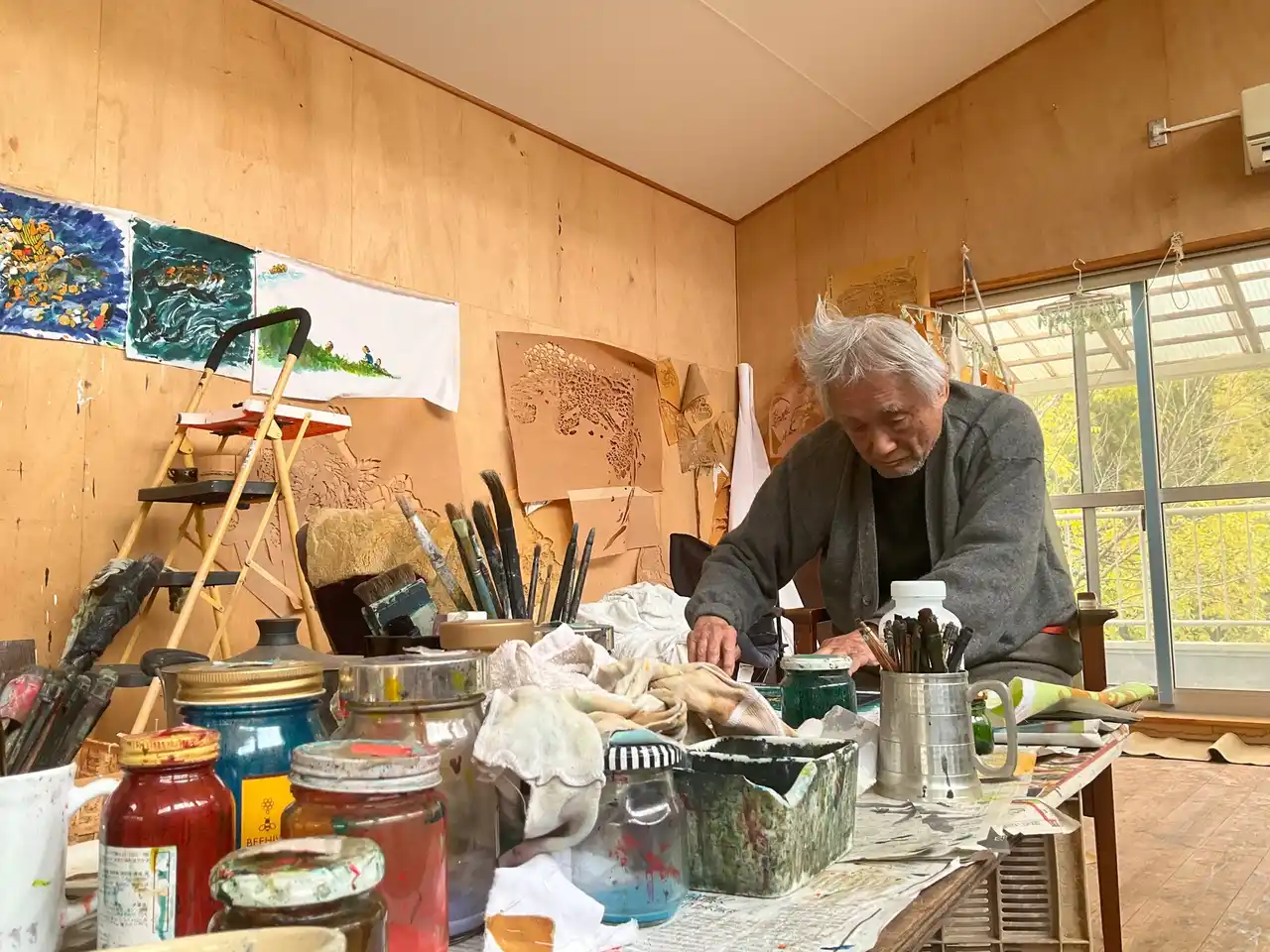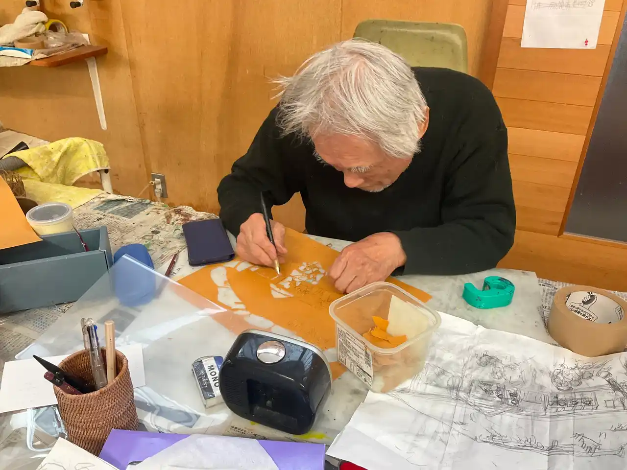 淡路島のアトリエで本作を制作する著者(2025年12月) |