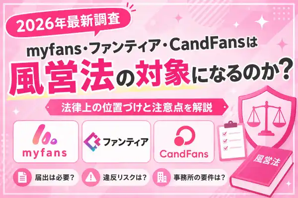 2026年時点において、myfans・ファンティア・CandFansは合法的に利用可能なサービスである一方、運用方法によっては風営法の対象となる可能性があります。特に収益化の有無、コンテンツ内容、運用形態によって扱いが変わるため、事前に理解しておくことが重要です。今後は収益性だけでなく、法的リスクを踏まえた運用設計が求められるフェーズに入っていると考えられます。