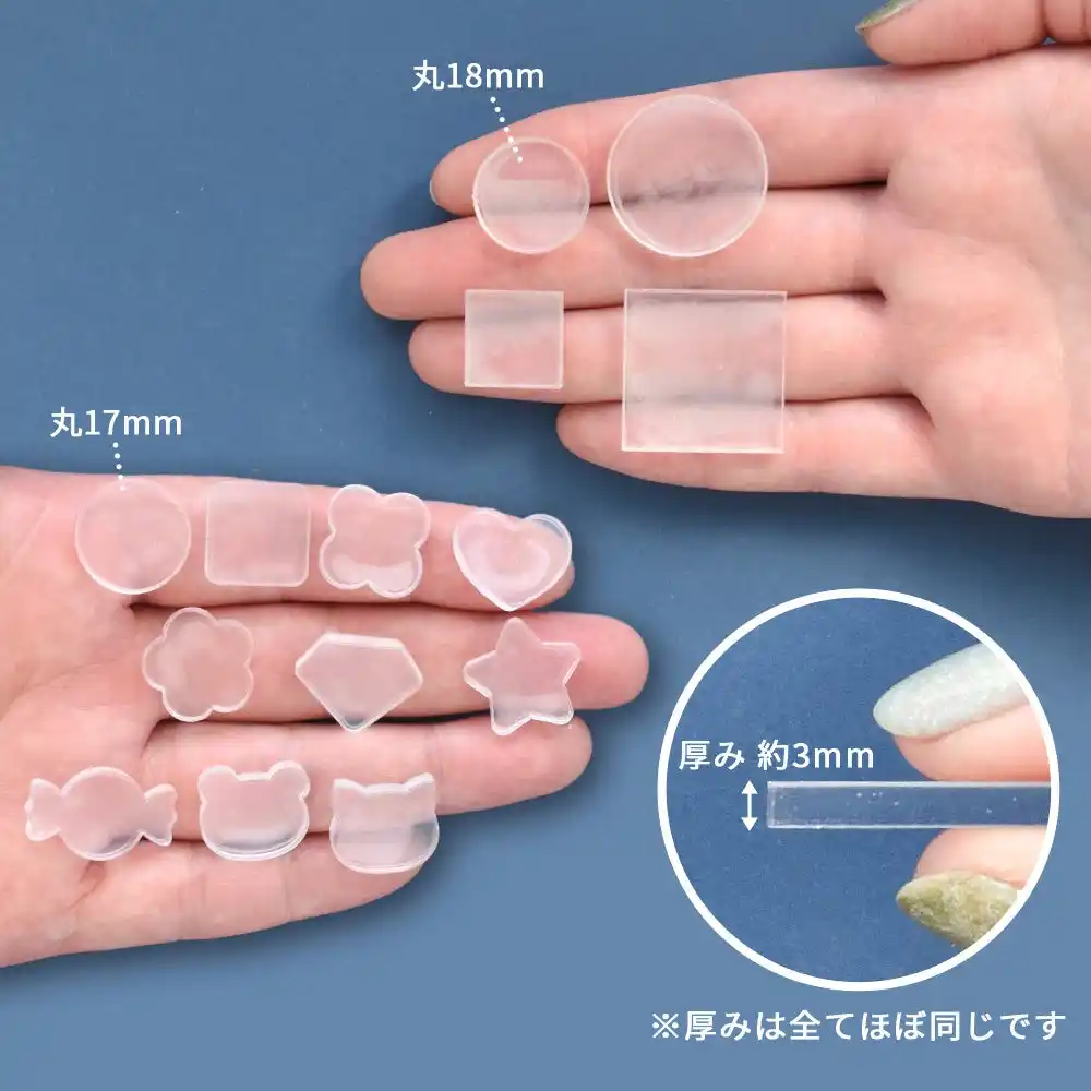 さらに、手作りでも本物のような仕上がりになるよう、厚みやサイズは市販のおはじきシールを参考に設計しています。 |