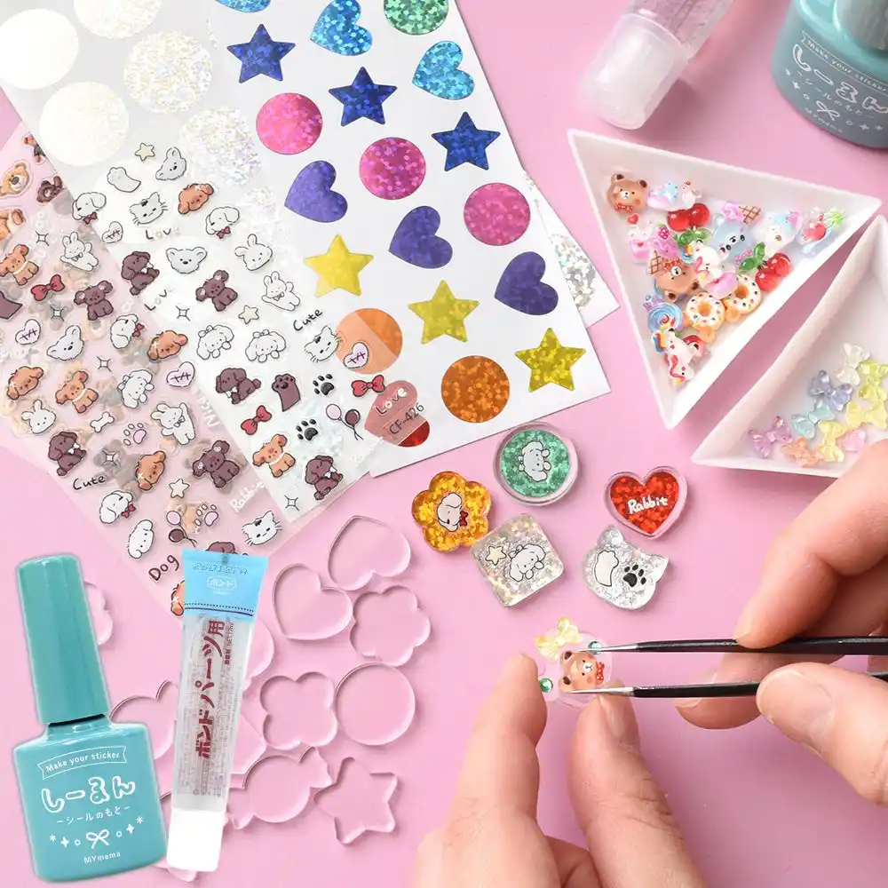 このプレートに対し、市販のシールやデコパーツ、ラインストーン等飾り付けを行うことでオリジナルのシールへと進化させられるという"体験型"の商品です。 |