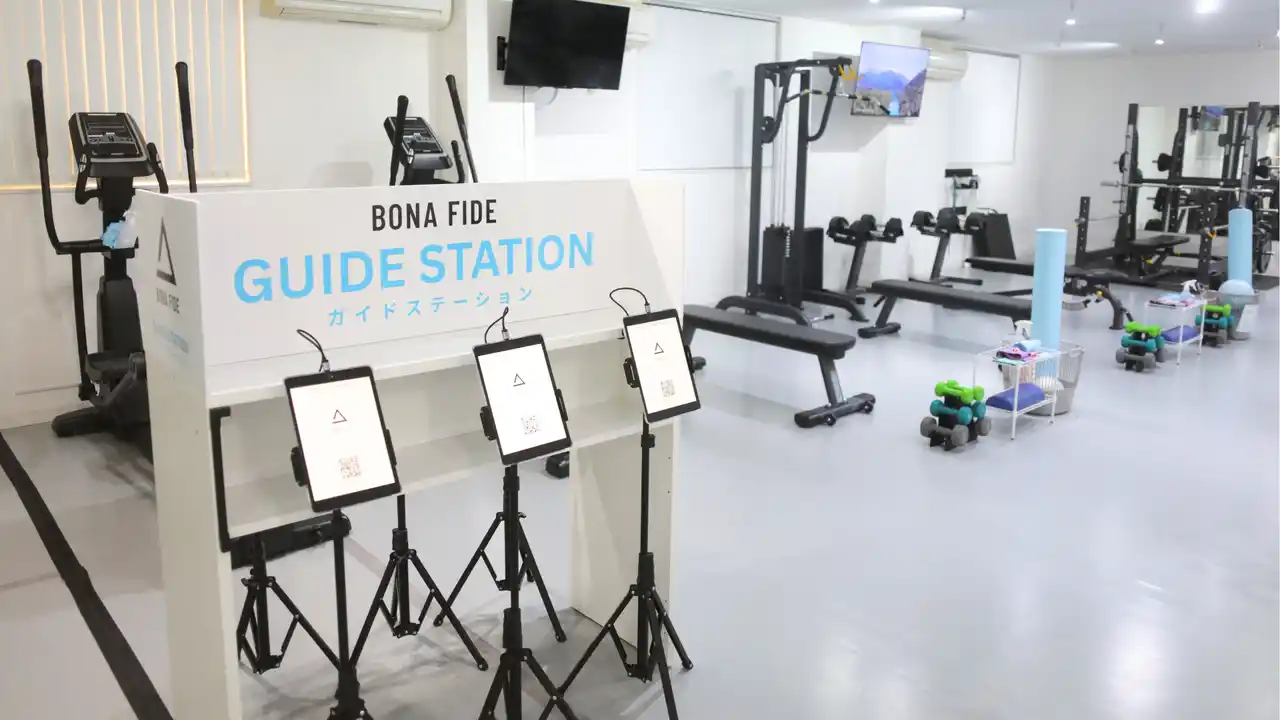 ボナファイドジムでは、各種目や進め方をサポートする独自ガイドと、 見守り・フォーム修正・指導を行うトレーナーを組み合わせています。 |