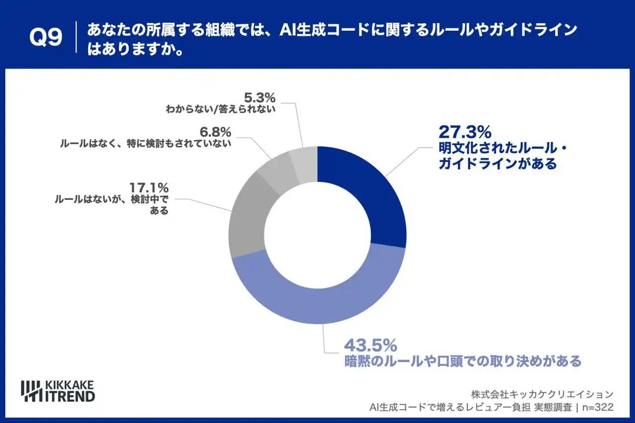 ■AI生成コードに関する「明文化ルール」は27.3%にとどまり、「暗黙のルール」が43.5%という結果に |