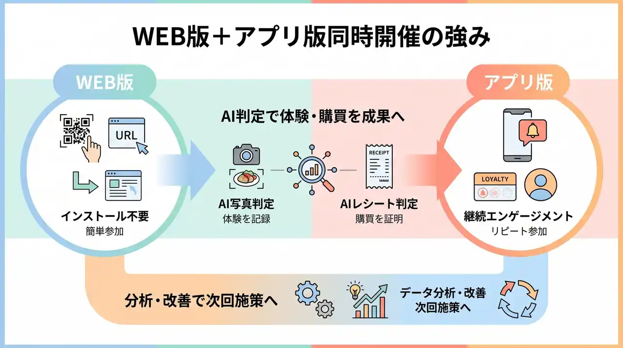 | 3.AI判定を活かす、WEB版+アプリ版同時開催の強み | |||||||||||||||