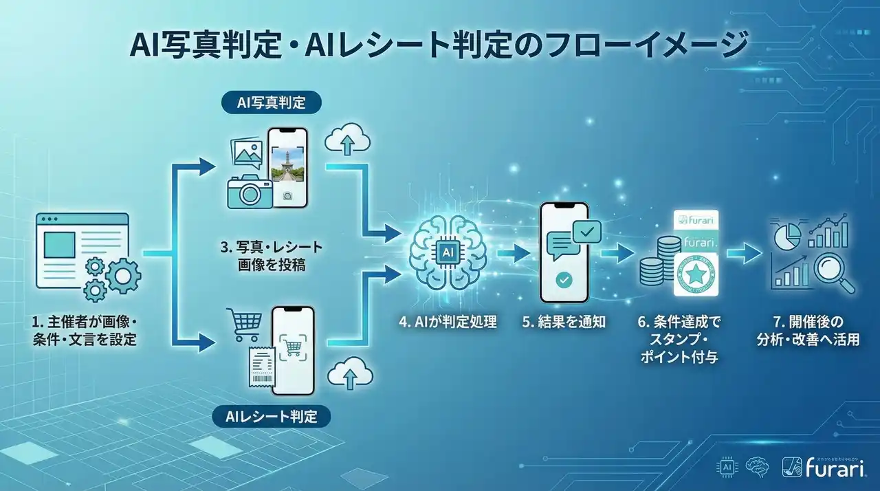 たとえば、観光地で写真を撮りたくなる体験をつくること。商業施設や商店街で、実際の購買につながる仕掛けをつくること。イベントの参加そのものを印象に残る体験に変えること。これからのスタンプラリーには、「行ったこと」を記録するだけでなく、その場での体験や消費行動をどう生み出すかが、より求められています。 今回furariが提供するAI写真判定・AIレシート判定は、こうした変化に対応するための新機能です。スタンプラリーを“巡った証明”で終わらせず、“体験した証明”“購入した証明”へと広げることで、主催者にとっては回遊促進だけでなく、現地体験の価値向上や購買行動の後押しまで設計しやすくなります。 |