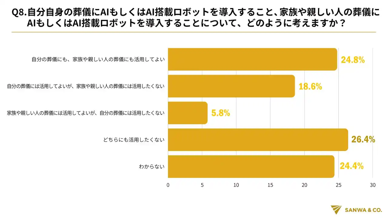 AIによって多くの仕事の代替が進むとの見方が広がる中、葬儀は人の関与が不可欠な分野が多いと認識されていることがうかがえます。 |