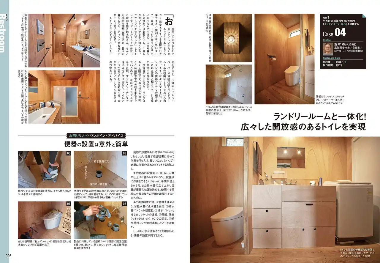 空き家再生・古民家リノベにおける作業の中で、ひと際ハードルが高いのが水回りのリノベーション。ここではキッチン、トイレ、風呂の3つに焦点を当て、DIYerたちの作品を例に、施工のポイントやアイデア、やりがちな失敗やそのリカバリー方法などを詳しく紹介。これを読めば、もう水回りのリノベーションはこわくない! |
