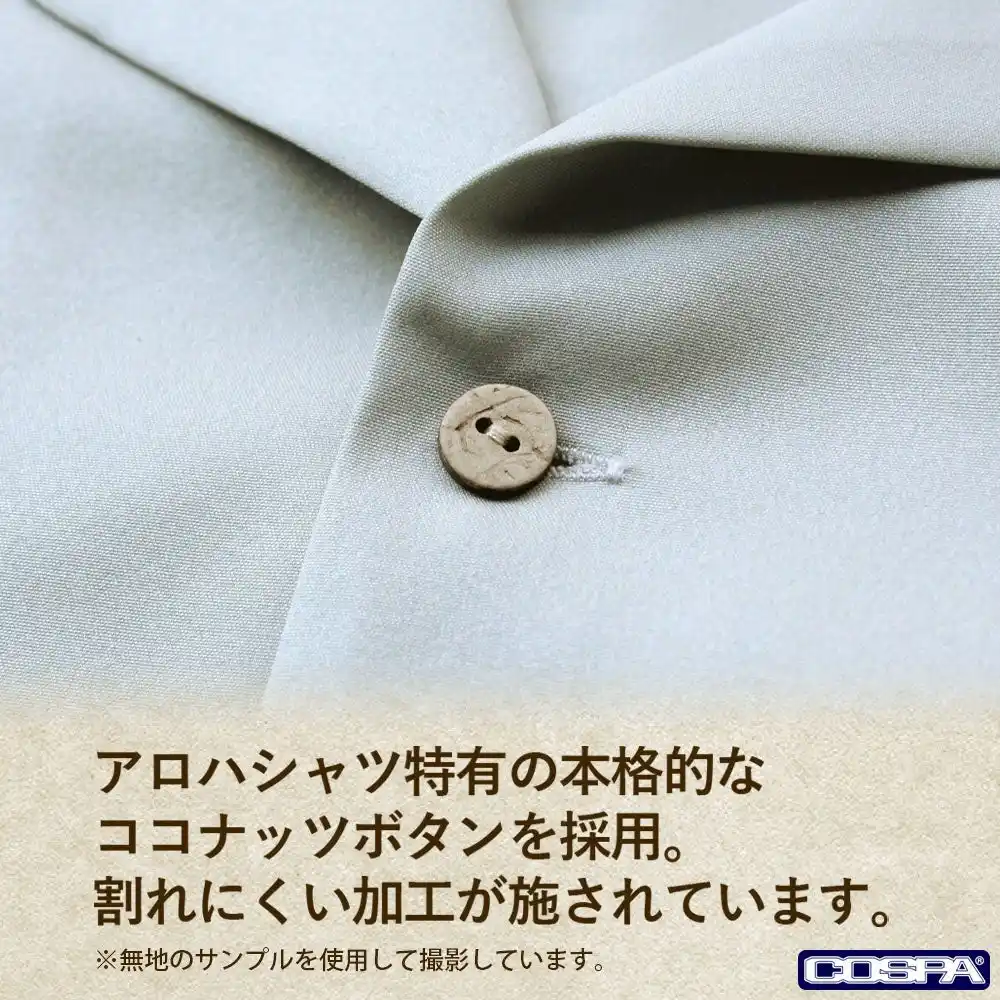 ・アロハシャツ特有の本格的なココナッツボタンを採用。割れにくい加工が施されています。 |