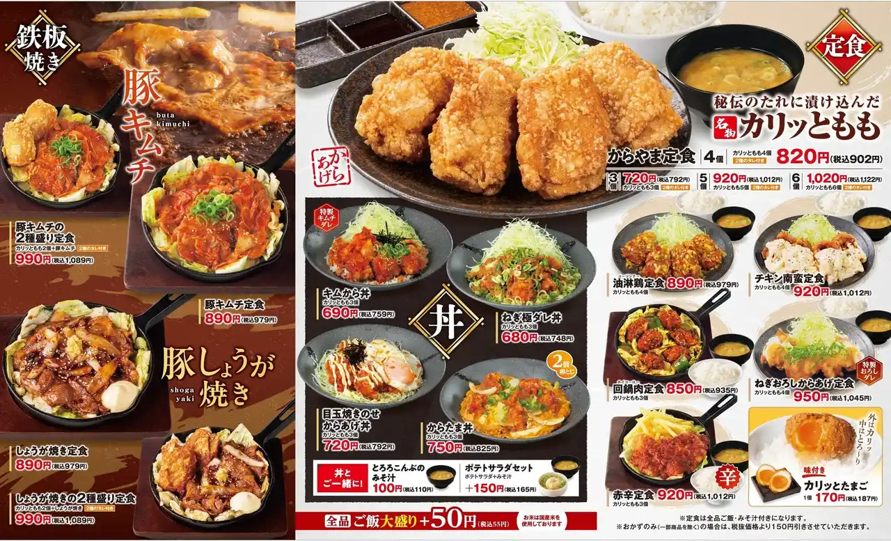 「からやま」は、2010年5月に浅草総本店をオープンした伝説のからあげ「からあげ縁-YUKARI-」のニンニクや生姜を使用せず鶏の旨味を引き出す、限られた人しか製法を知らない「秘伝の特製漬け込みダレ」で仕上げた「カリッともも」を、ご飯のおかずとして揚げたてを食べられたらお客様に喜ばれるのではと考え、とんかつ専門店「かつや」とコラボレーションし、2014年12月に「からあげ定食専門店」として1号店を相模原市に開店しました。 2024年7月、新たなご飯のおかずの選択肢として、しょうがのきいた特製濃厚ダレを絡め高温の鉄板で焼き上げた「しょうが焼き定食」が仲間入り。 これからも「からやま」は、からあげ専門店としてお客様にご満足いただける商品やサービスの提供に努めてまいります。 |