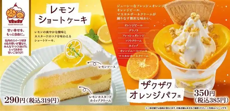 また、デザートには、レモンの爽やかな酸味とカスタードのコクを重ねた「レモンショートケーキ」と、フレッシュオレンジのジューシーさにグラノラのザクザク食感を組み合わせた「ザクザクオレンジパフェ」をご用意。いずれも社内のスイーツ好きメンバーで構成されたスイーツラボが企画した、見た目にも楽しい特製スイーツです。 |