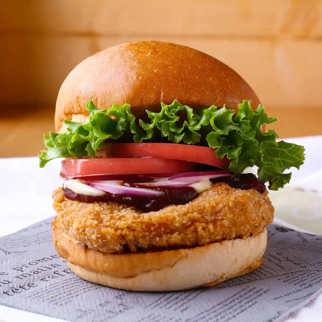 パン粉とスパイスを使用した特製の衣をつけ、サクッとジューシーに仕上げたフライドチキンに特製BBQソースを合わせました。 |