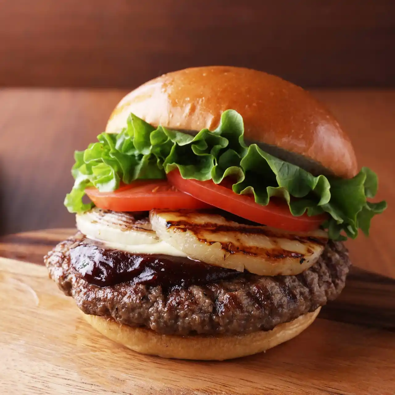 クア・アイナ自慢の溶岩石グリルで焼き上げることで旨みを閉じ込めたビーフ100%パティと、表面を軽く炙ることで甘みとジューシーさを引き出したパインを贅沢に重ねた一品です。 特製BBQソースの深いコクとスモーキーな香りが、ビーフパティとフルーツの絶妙なハーモニーを一層引き立てます。 |