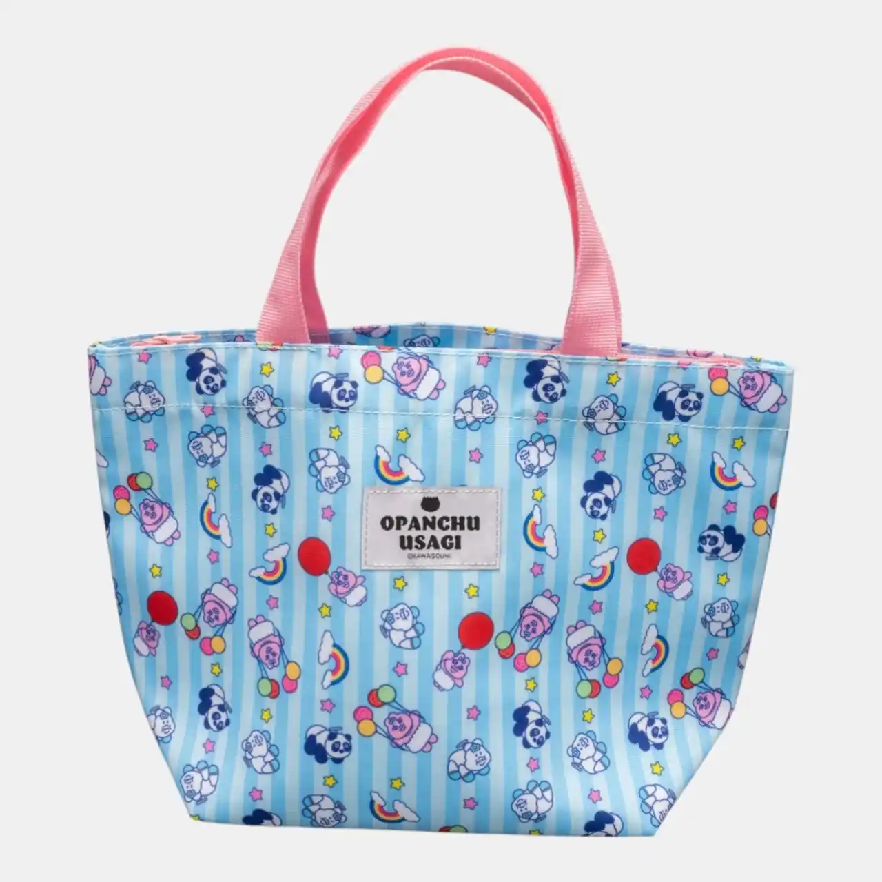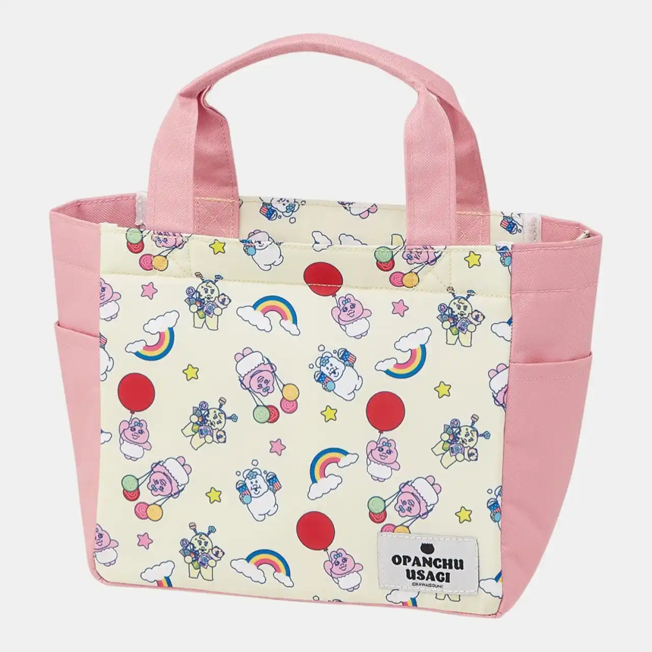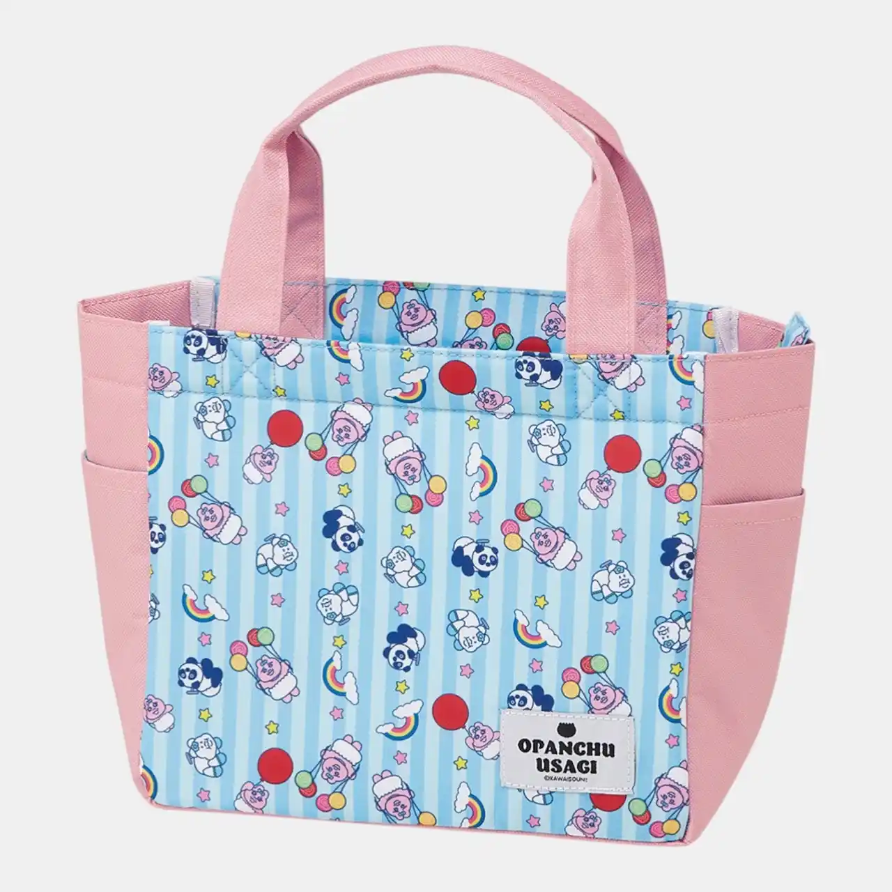「おぱんちゅうさぎ」のキュートな姿が描かれた、ランチタイムや日々のお買い物に活躍する保冷バッグやペットボトルケースなど全5アイテムが登場します。