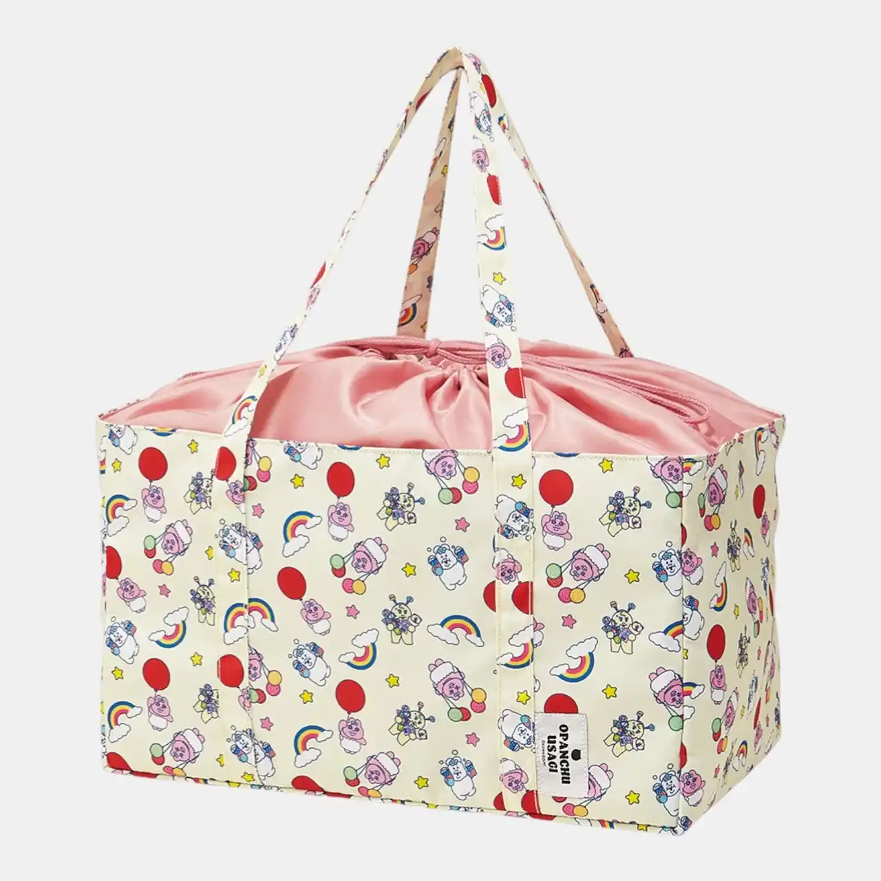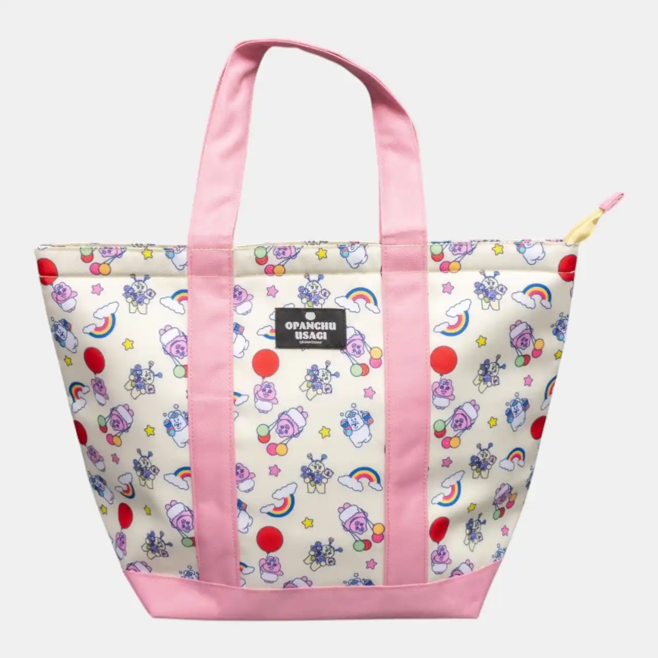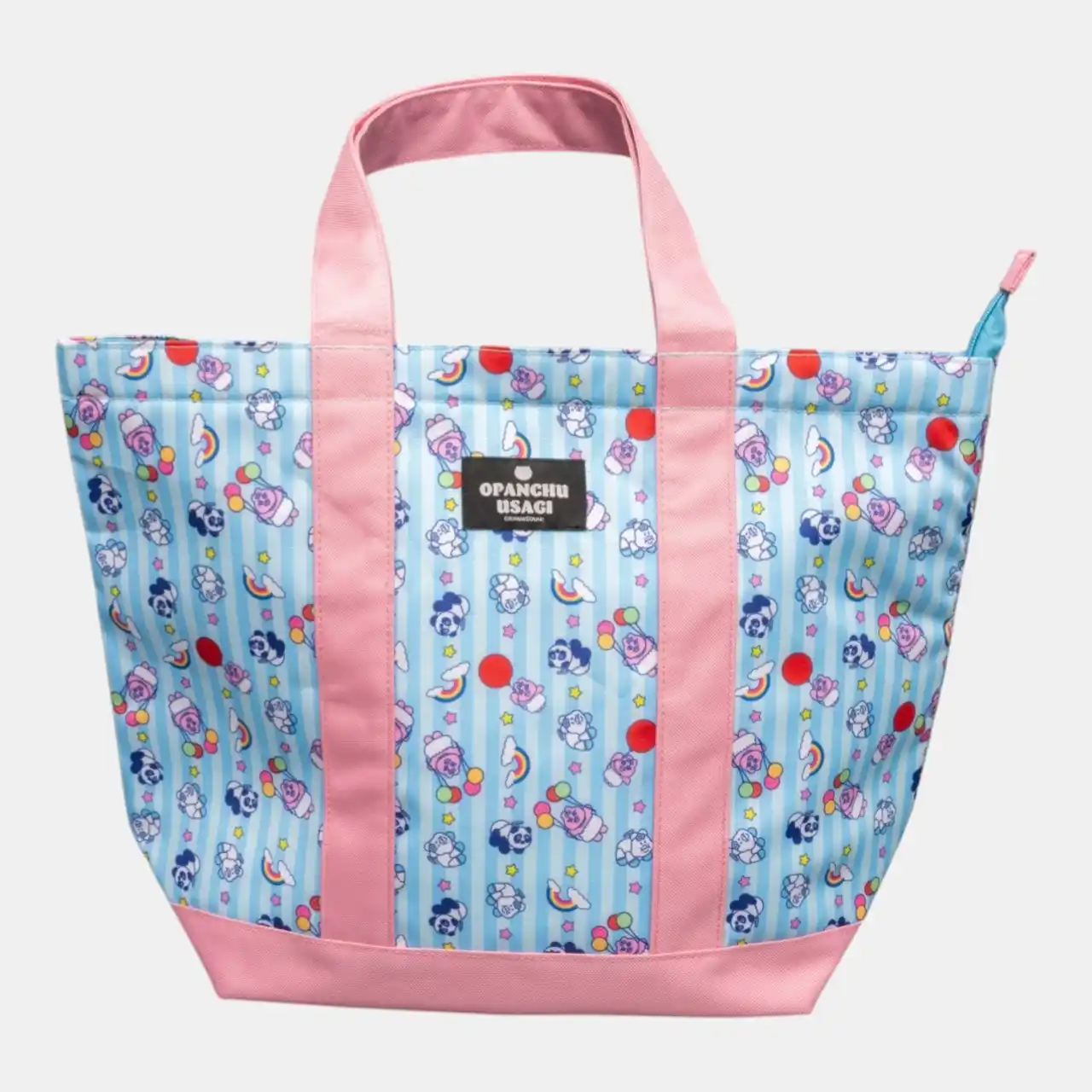 「おぱんちゅうさぎ」のキュートな姿が描かれた、ランチタイムや日々のお買い物に活躍する保冷バッグやペットボトルケースなど全5アイテムが登場します。
