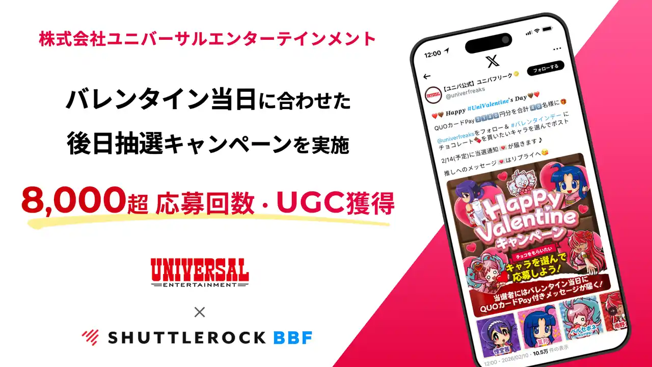 この度、株式会社ユニバーサルエンターテインメント様に「Shuttlerock BBF」を導入していただいた背景やキャンペーン目的を実現するための設計などについて紹介する記事を公開しました。ぜひご覧いただき、今後のキャンペーン施策にご活用ください。 |