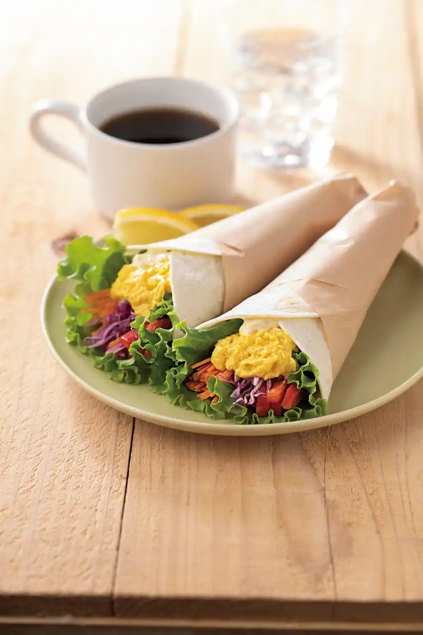 業務用商品のメニュー例:ソイスクランブルと野菜のラップサンド |