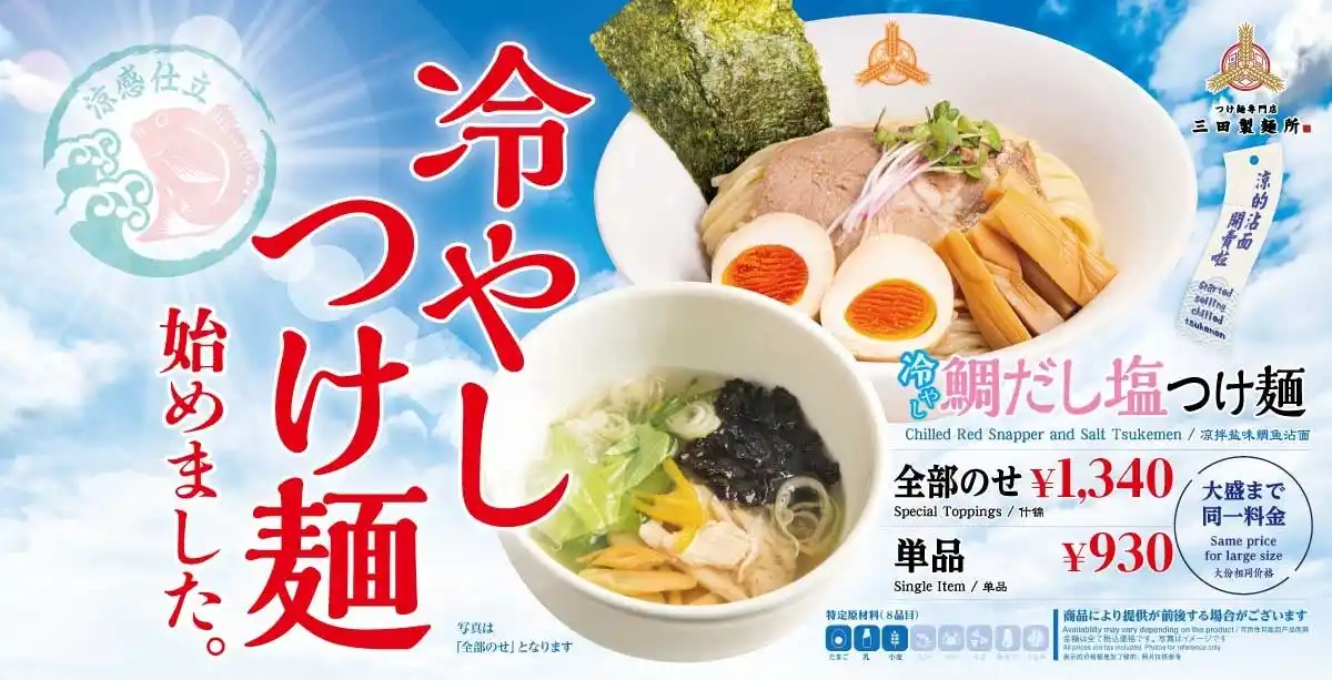初夏から夏の暑さが残る時期まで、長く楽しめる三田製麺所の夏の定番を、ぜひご賞味ください。 |