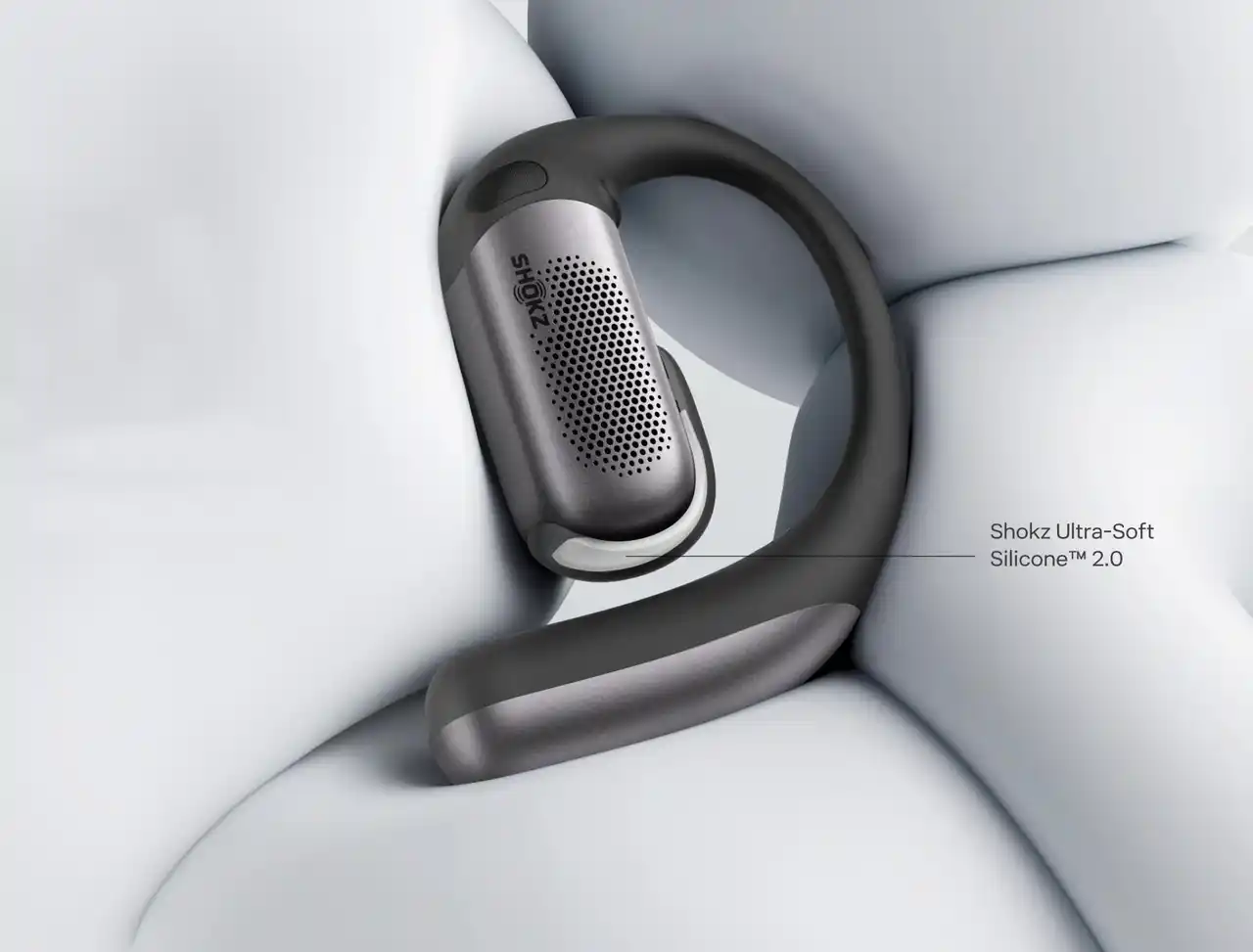 肌にやさしい Shokz Ultra-Soft Silicone(TM) 2.0 を採用し、柔らかな着け心地を実現しています。耳を圧迫しにくいオープンイヤーデザインに加え、超薄型のニッケルチタン合金製イヤーフックが耳の形にしなやかにフィットし、長時間でも快適で安定した装着感を保ちます。 |