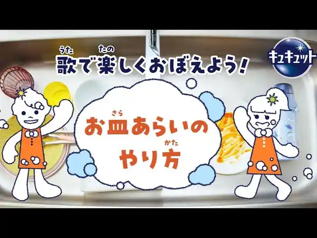 歌で楽しく食器洗いの方法について学べる動画。 |