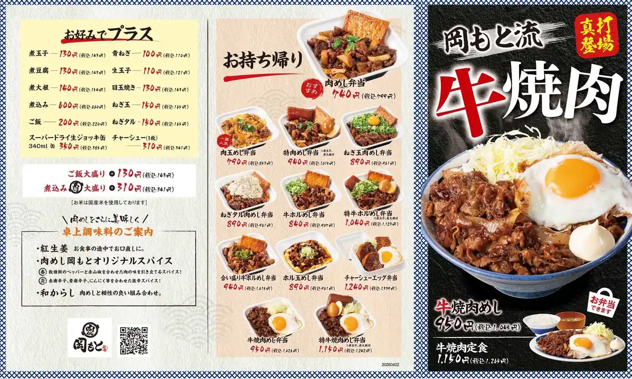 | とんかつ専門店「かつや」などを展開するアークランドサービスホールディングス株式会社の子会社、株式会社トビラダイニング(本社:東京都千代田区/代表:布施 裕康)は、「肉めし岡もと」にて、2026年4月22日(水)より『牛焼肉めし/定食』を販売開始いたします。ニンニクベースの特製ダレがガツンと効いた、食欲を一気に引き上げる一杯に仕上げました。 | |||