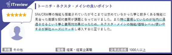 東日印刷株式会社(本社:東京都江東区、社長:西川光昭、以下 TONICHI〈 https://tonichi-printing.co.jp 〉)のIT事業部門・T-NEXT本部が開発・販売する法人向け名刺管理アプリ「ネクスタ・メイシ」( https://tnexta.com/ ) が、アイティクラウド株式会社が運営する国内最大級のIT製品/SaaSのレビューサイト「ITreview」の「ITreview Grid Award 2026 Spring」の名刺管理ソフト部門において、認知度と顧客満足度の高いサービスに贈られる「LEADER」を5期連続で受賞しました。 |