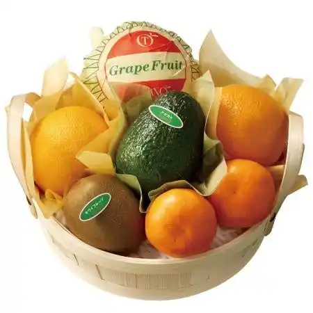 温室栽培みかん<愛知県、佐賀県、大分県または愛媛県産>、オレンジ<アメリカ、オーストラリア、南アフリカまたはエジプト産>×各2、グレープフルーツ<アメリカ、南アフリカまたはトルコ産>、キウイフルーツ<ニュージーランド産>、アボカド<メキシコまたはペルー産>×各1 |