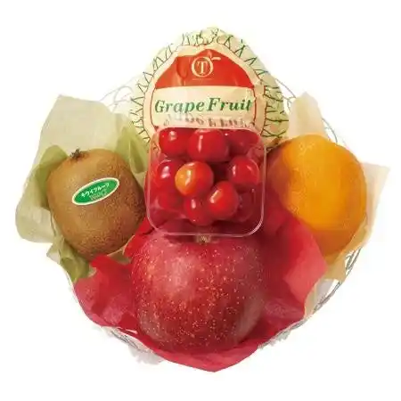 さくらんぼ 約50g<山形県、長野県、山梨県、または青森県産>、オレンジ<アメリカ、オーストラリア、南アフリカまたはエジプト産>、グレープフルーツ<アメリカ、南アフリカまたはトルコ産>、りんご<青森県産>×各1 |