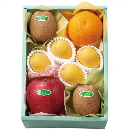 サンゴールドキウイ<ニュージーランド産>×2、ふじ<青森県産>、オレンジ<アメリカ、またはエジプト産>×各1 |