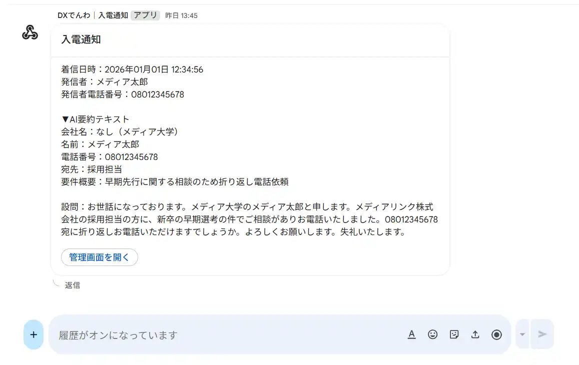 【機能拡張】入電通知時のGoogleチャット通知機能の概要 |