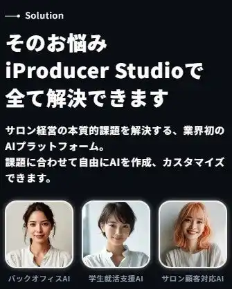 当社は、口コミ自動返信機能の提供を皮切りに、iProducer Studioをさらに進化させていく方針です。口コミ返信にとどまらず、予約管理・顧客対応・スタッフ教育支援など、美容サロンの運営に関わるあらゆる業務にAIを活用し、サロンオーナーやスタッフが「本来集中すべき仕事」に専念できる環境の実現を目指します。 |
