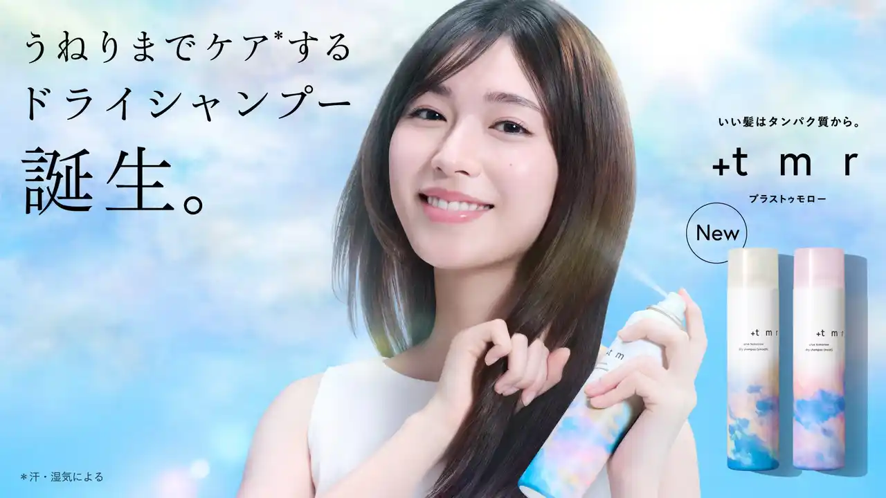 株式会社ファイントゥデイ(本社:東京都港区、代表取締役 社長 兼 CEO:小森哲郎)が展開する、髪の主成分であるタンパク質に着目した髪の本質ケア(※2)を目指すヘアケアブランド「+tmr(プラストゥモロー)」(以下+tmr)は、夏の汗や湿気による“髪のうねりまでケア(※1)”する「ドライシャンプー」を、数量限定で2026年4月22日(水)より順次全国で発売を開始します。 |