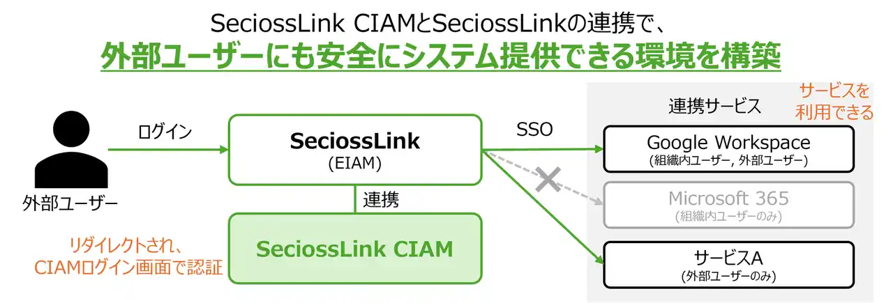 SeciossLink CIAMとSeciossLinkの連携で、外部ユーザーにも安全にシステム提供できる環境を構築。 |