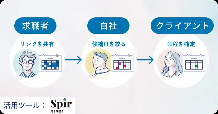 「Spir for agent」を活用し、3社間の日程調整を効率的に行うことができます。 |