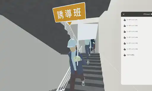 また、リーダー、誘導班、消防班、など、参加者ごとに異なる役割に応じた専用シナリオを用意しており、各自が自身の役割にフォーカスして訓練を受けることができる構成になっています。 |
