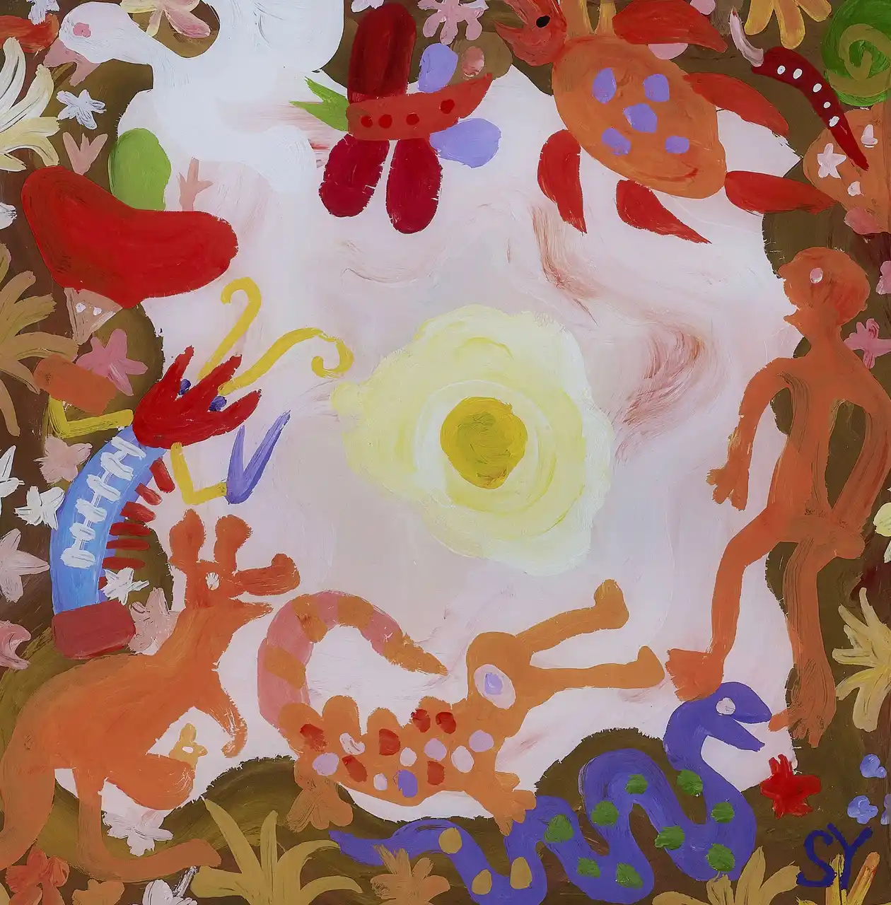 柚木沙弥郎「せんねんまんねん」ガラス絵(1996年) /春風洞画廊 |