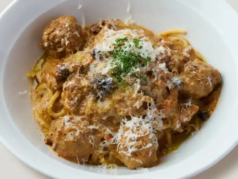 ポルチーニ香る濃厚クリームミートソース×豪州穀物牛100%ミートボール |