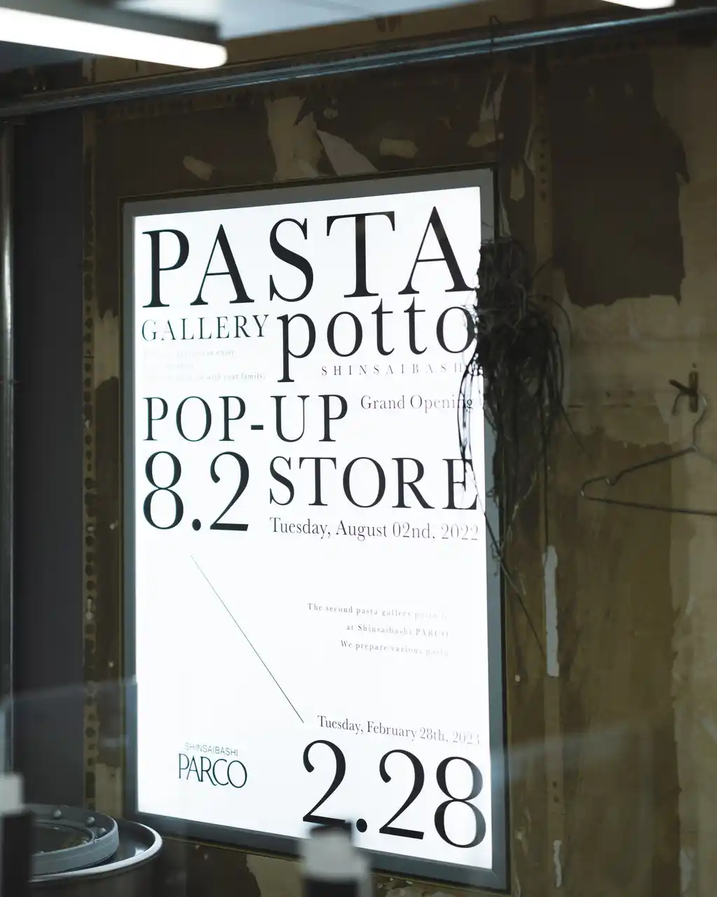 店名:pasta gallery potto 心斎橋PARCO店 所在地:大阪府大阪市中央区心斎橋筋1-8-3 心斎橋PARCO B2F(心斎橋ネオン食堂街内) リニューアルオープン日:2026年4月21日(火) 営業時間:11:00~23:00(L.O.22:00) |
