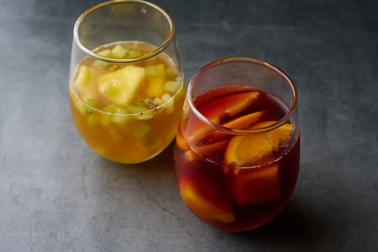 凍らせオレンジ&マンゴーのフルーツティーサングリア/凍らせキウイとパインのフルーツティーサングリア |