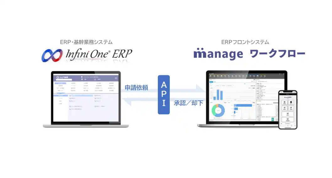 FutureOne株式会社(本社:東京都品川区、代表取締役社長:佐藤 隆元、以下フューチャーワン)は、株式会社COEL(本社:愛知県名古屋市、代表取締役:深見 和久、以下COEL)が提供するERPフロントシステム「manage」のワークフローと、当社のERP・基幹業務システム「InfiniOne」とのAPI連携機能を提供開始しました。 |