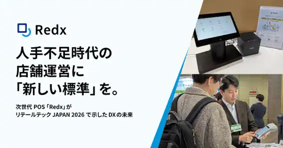 近年、小売業が直面する「人手不足」と「コスト増」に対し、Redx(R)はマニュアルを必要としない直感的なUI(操作画面)と、場所を選ばない機動力を融合させた実機でのデモを展示し、多くの来場者から、既存の店舗運営をシンプルに変えるソリューションとして、高い関心を集めました。1台でPOSと決済を兼ね備える決済端末Redx(R) Mobile(以下「モバイルPOS」)はキャッシュレス処理のみならず、「据置POS」と連動することで現金決済(釣銭機連動)も実現する現場に最適なスタイルを提供。 |