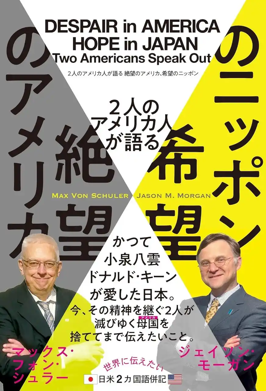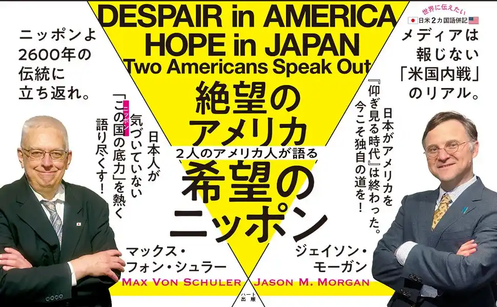 本書『2人のアメリカ人が語る 絶望のアメリカ、希望のニッポン』は、アメリカ出身のマックス・フォン・シュラーとジェイソン・モーガンの2人が、自国の現状を「内側」から徹底的に見つめ直し、その危機の本質を描き出すと同時に、日本という国の価値を再発見する評論書です。 |