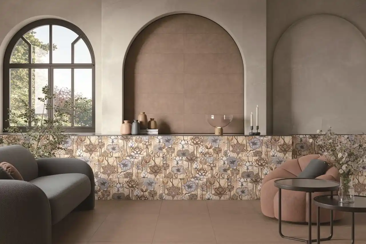 | 大地の豊かさを感じさせるブラウンなどを基調としたタイルは、視界に優しく馴染み、空間に「Calm(落ち着き)」の土台を作ります。そこに、水の流れや熟した果実など生命の動きを表現するカラーやテクスチャーを「Vitality(活力)」として重ね合わせるのが、私たちが提案したいスタイルです。この静と動のレイヤーを空間に取り入れることで、長く過ごす部屋に安らぎをもたらしつつ、日々の暮らしに前向きなエネルギーを与えてくれます。住宅から商業施設まで、現代人が求める心地よい空間づくりに最適な12シリーズの中から、今回は特に注目いただきたい4シリーズ(「テラセイル」「クレイ」「メロディ」「カンドーレ」)をご紹介します。 | |||||||||||||