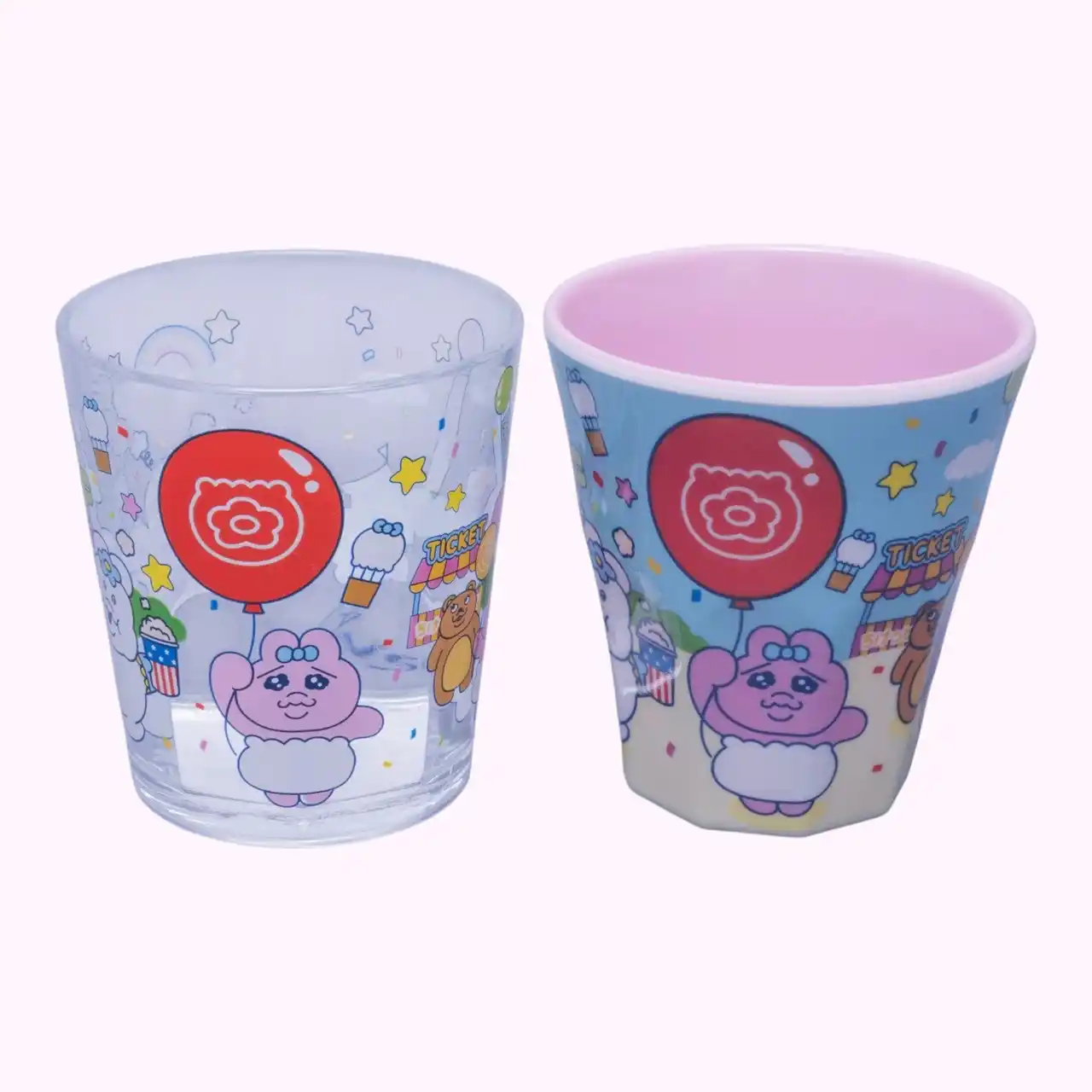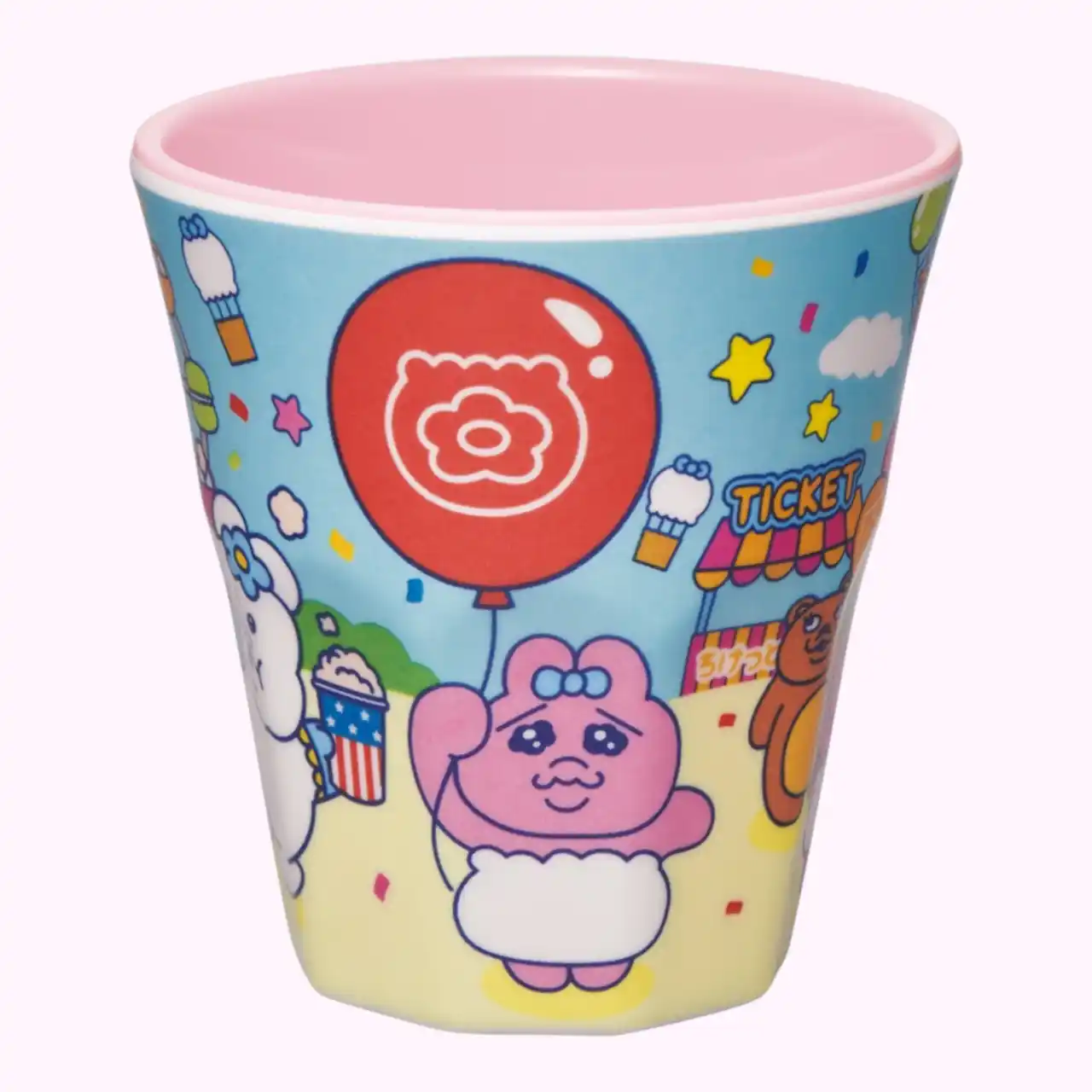 軽くて丈夫なメラミン樹脂製のタンブラーです。落としても割れにくいため、小さなお子様がいるご家庭でも安心してお使いいただけます。内側は可愛らしいピンク色です。 |