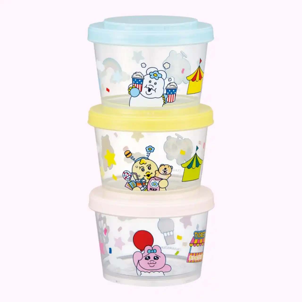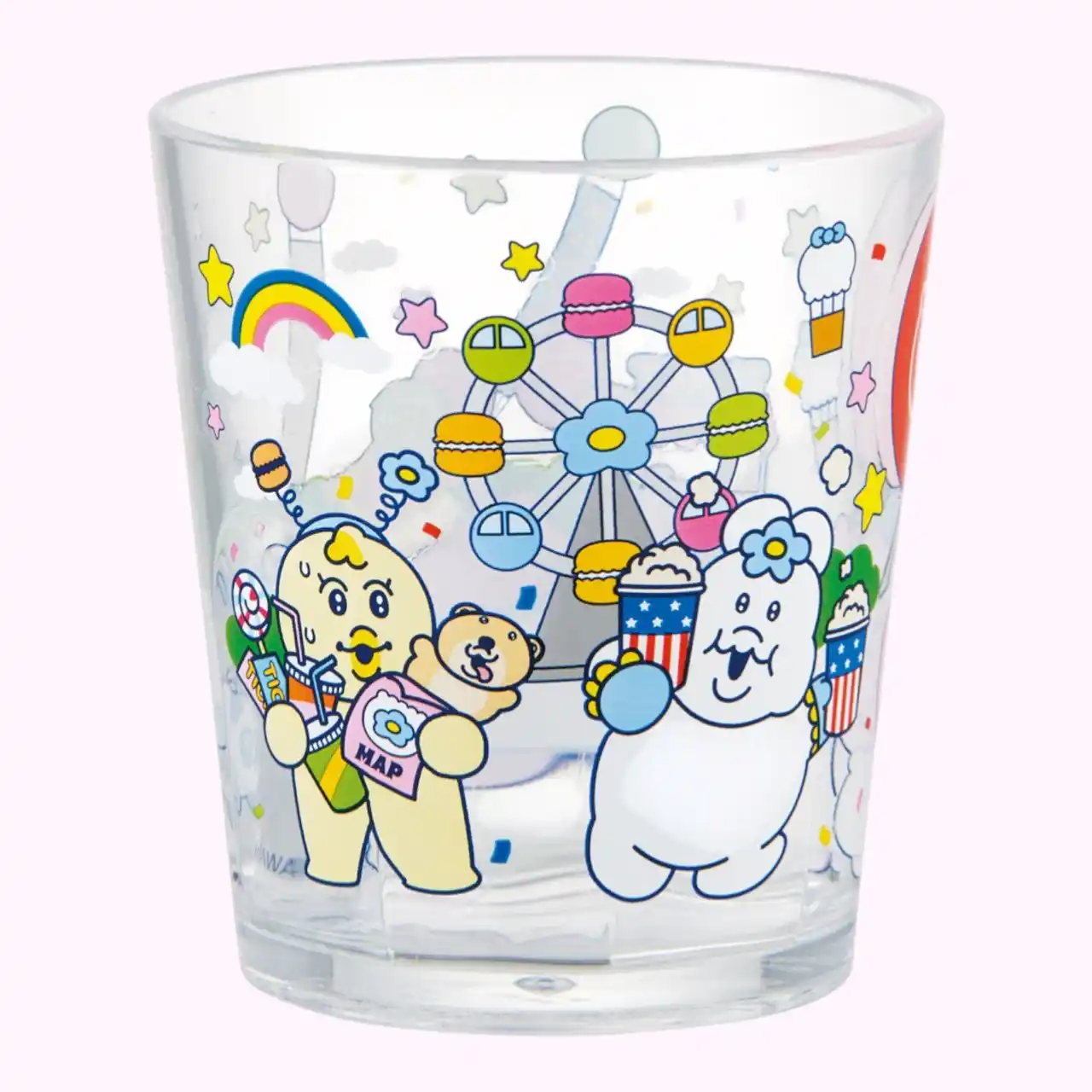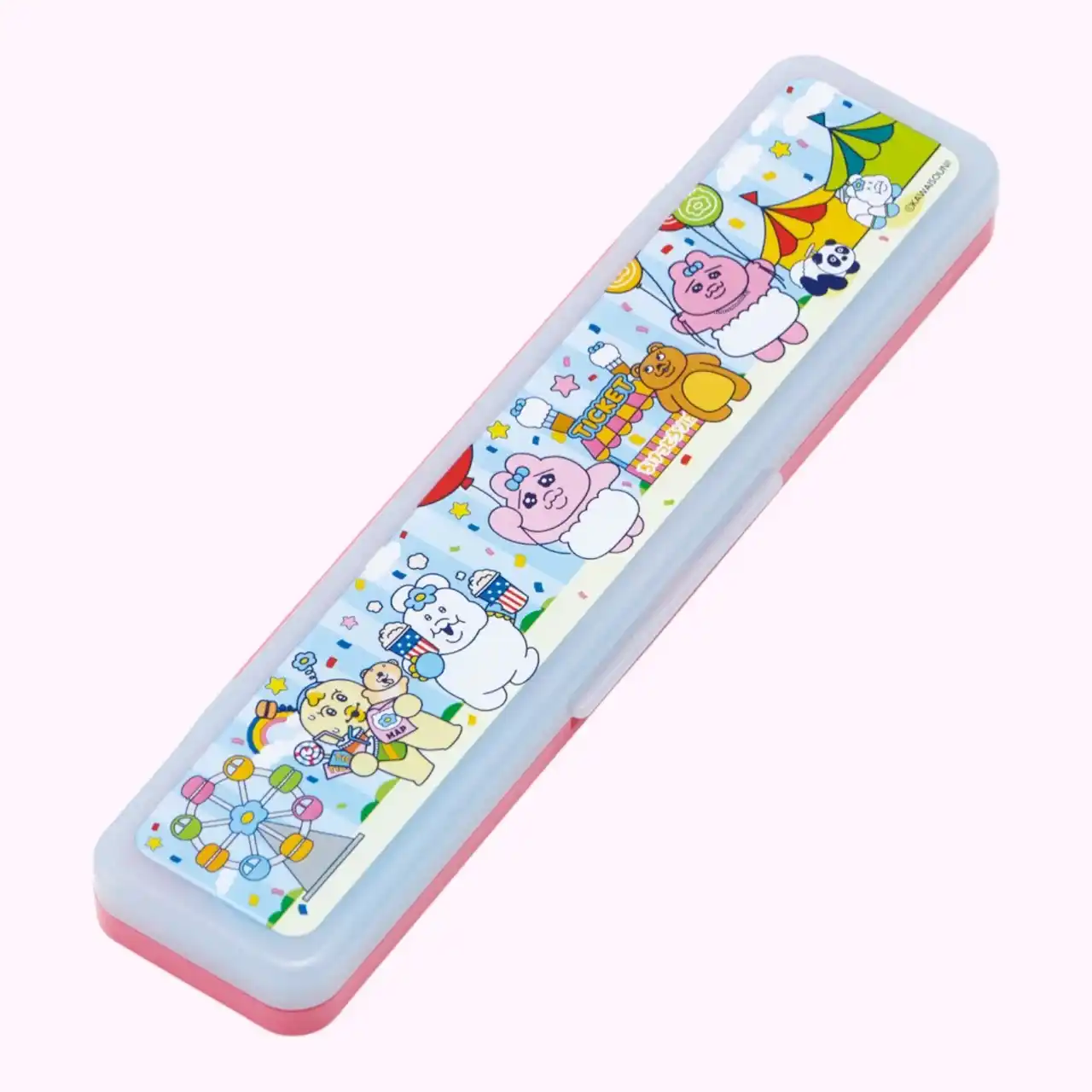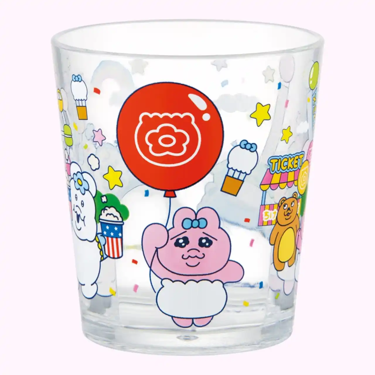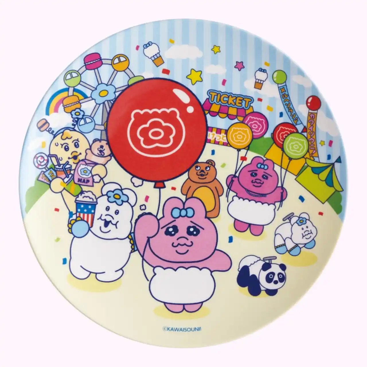 本シリーズは、「おぱんちゅうさぎ」や「んぽちゃむ」たちが遊園地で仲良く遊ぶ姿をテーマにした新規描きおろしアートを使用しています。キャラクターたちのポップで賑やかな世界観を表現した、カラフルで明るいデザインです。風船を持ったり、ポップコーンを食べたり、パンダの乗り物に乗ったりと、遊園地を満喫する姿が各アイテムに描かれています。 |