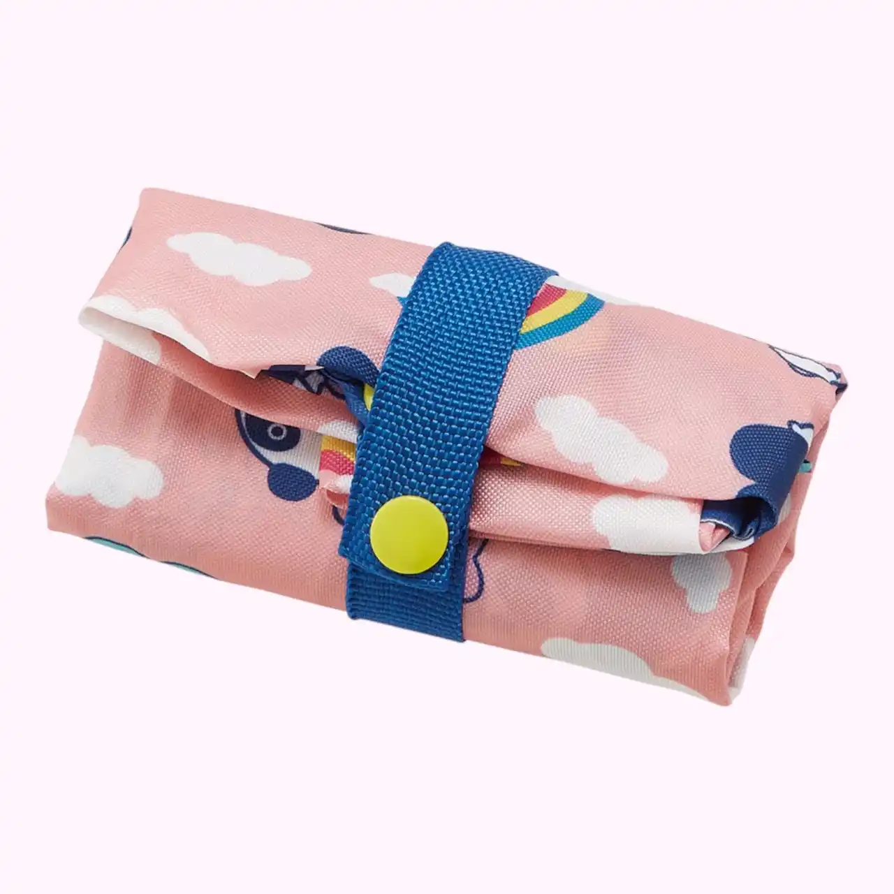 お買い物に便利なマチの広いショッピングバッグです。使わない時はコンパクトに折りたたむことができ、付属ポーチに収納して持ち運べます。 |